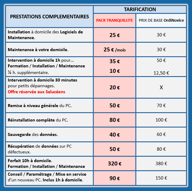 En cas de déplacement, les tarifs du PACK TRANQUILLITE ne sont applicables que